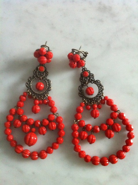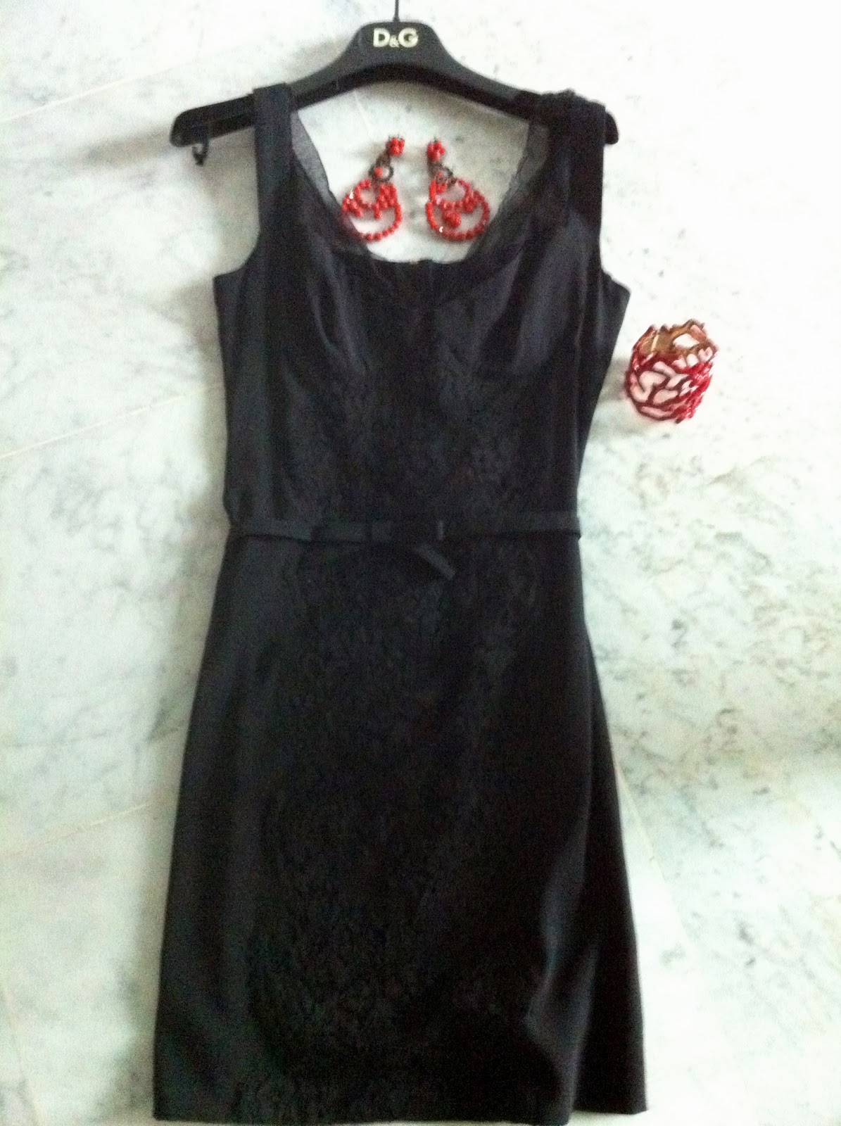 Come potete vedere nella foto, questo era uno dei miei outfit preferiti per le serate estive: abito nero di D&G in pizzo S/S 2011, Chandelier rossi Mercantia e Bracciale a forma di corallo rosso in metallo acquistato al mercato di Forte dei Marmi.