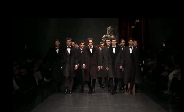 A seguire la sfilata di Dolce&Gabbana, nella quale i due stilisti ci hanno proposto due differenti tipologie di uomini: da una parte un uomo sfarzoso, ricco, lussuoso che vuole stupire coi suoi cappotti con pelliccia, i tessuti damascati e riccamente, finemente lavorati; dall’altra un uomo semplice, quotidiano, che si veste per andare a lavorare con cappotti attillatti, jeans e l’immancabile coppola stile siciliano, un segno di riconoscimento e must per questi due stilisti.