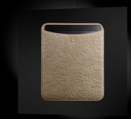 Il porta IPad sempre in agnello goffrato con le camelie ricamate, per le fashioniste più tecnologiche.