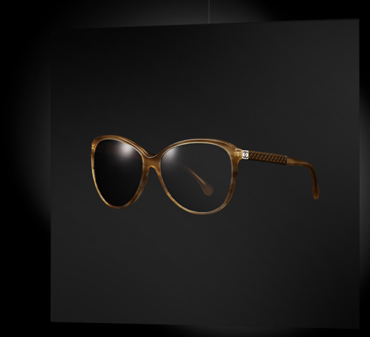 …e gli occhiali da sole in acetato effetto tweed sia interno che esterno, e con piccoli inserti in agnello metalasse con logo!