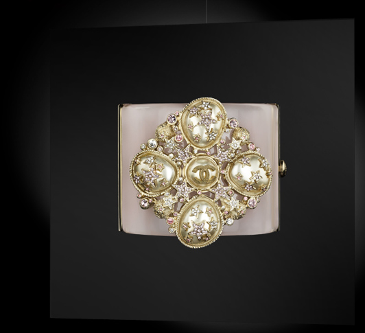 Bracciale in abbinamento con gli orecchini, in resina color cipria impreziosito con cabochon in resina e stelle di strass