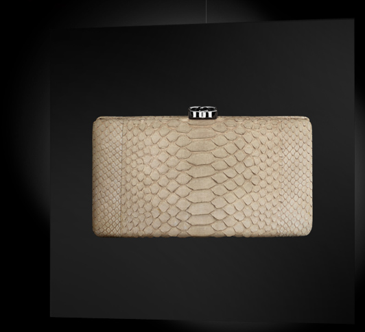 La terza è una pochette da sera rigida, in pitone scamosciato con fermaglio argento.
