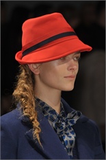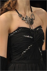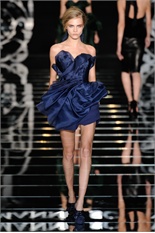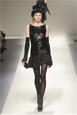 I colori sono ancora quelli scuri in sintonia con le altre sfilate: dal tweed grigio, nero e marrone per il giorno, ai colori metallizzati della sera, in particolare blu elettrico, ciclamino e nero, con qualche nota di bianco.