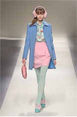 Dall’accostamento del rosso blu di cloche, cappotti e blazer in pannetto tipico stile british, ai colori pastello, tenui del mint, celeste e rosa confetto (che quest’estate sono un must) che tinteggiano pellicciotti, abiti, calze in accostamenti dolci e romantici; dal bianco candido di baschi, stivali con pelo e pellicce per ricoprirsi nelle fredde giornate in alta montagna, al nero sfavillante per la sera di chiffon e paillettes. Una collezione sublime che conferma ancora di più la fama della stilista emiliana.