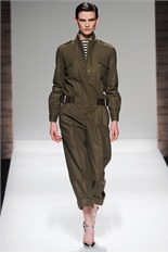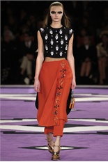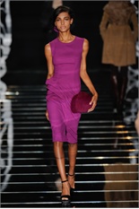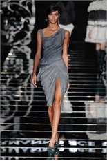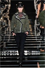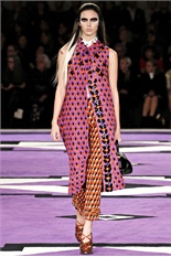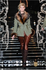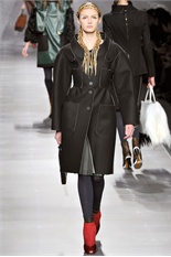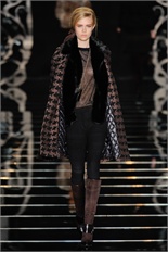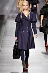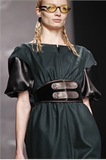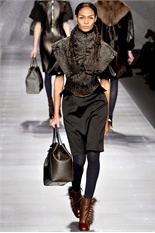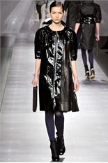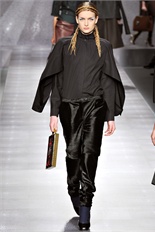 Lo stilista tedesco ha puntato soprattutto l’attenzione sulla ricerca dei tessuti: pelle e taf taf si intrecciano a pellicce e fibre nuove sintetiche proiettando la donna nel futuro imminente. Maniche a sbuffo, pantaloni androgeni, gonne longuette e stivali vestono una donna urbana, di città, che deve affrontare tutte le insidie della vita qutidiana. I colori sono gli stessi delle metropoli: il grigio fumo dello smog e dei grattacieli, il color mattone dei palazzi e il nero delle strade. Una città quindi proiettata e disegnata sugli abiti. Un discorso a parte meritano le borse, capi trainanti della maison, che vendono la nascita di un nuovo modello, che sono sicura che diventerà il must della prossima stagione fredda.