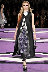 E per concludere la giornata non potevo mancare di citare PRADA. Miuccia Prada ci proietta invece in una dimensione passata, negli anni ’60; gli anni dei trench larghi allacciati in vita, gli anni delle giacche larghe con gli spallotti, gli anni dei pois e delle fantasie a illusione ottica, gli anni delle Mary Jane e delle paperine. Gli anni dove l’eleganza non era una caratteristica riservata ai grandi eventi e alle serate a teatro, ma respirava in ogni angolo urbano e nella quotidianità.