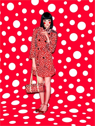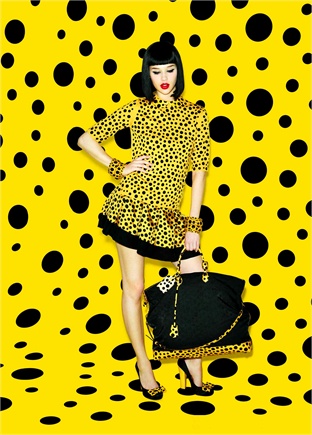 Leitmotiv della collezione è il trionfo di polka dots, pois, che da sempre ha caratterizzato le opere dell’artista giapponese, nata nel 1929 e attualmente ricoverata in un ospedale psichiatrico, dove vive da 35 anni. Ed è proprio la permanenza in questo luogo che le ha permesso di tramutare in realtà e in opere d’arte i suoi sogni e incubi più oscuri, che lei stessa definisce “self-obliteration”, dando vita a un trionfo di cerchi, occhi, forme biomorfiche, zucche e pallini di colori accesi e contrasti cromatici, come la sua parrucca arancione fluo che indossa costantemente.