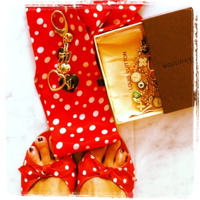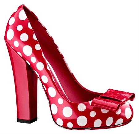 La collezione disegnata da Marc Jacobs per Louis Vuitton rappresenta perfettamente questo trionfo di pois e pallini. Maxi Foulard in seta rossa a pois bianchi, si alternano a bluse gialle con pois neri, accostati a scarpe a punta tonda e tacco quadrato della stessa fantasia.