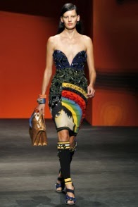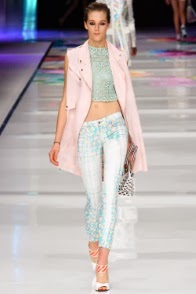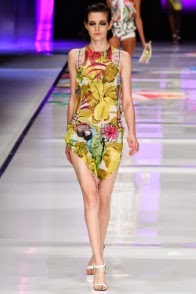 E per finire Just Cavalli. Anche qui gli anni ’90 sembrano fare capolino, stavolta nelle camicie “Hawaiane” che spopolavano negli uomini all’epoca. Il motivo floreale esotico viene ripreso in gonne, abiti e bluse aderenti, che segnano le forme femminili giocando sulla seduzione di ampi spacchi e ombelichi a vista , senza trascendere nella volgarità. I toni sono chiari, freschi: dal giallo limone, all’arancio passando per i toni del rosa e azzurro pastello. Non mancano nemmeno tocchi di originalità, con tartan interpretato in chiave estiva, leggera e fresca.