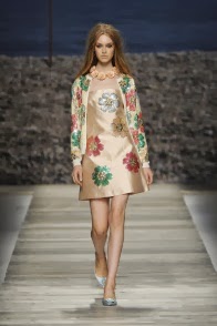 Le modelle dalle acconciature cotonate, avanzano indossando abiti a tubino dalle gonne ampie a ruota, camicie con gli spallotti e pantaloni “stile Capri”, nei tessuti del raso e seta. Non mancano i motivi floreali, punti cardine della maison, che in questa collezione si fanno stilizzati. I colori sono quelli freschi e pastello dell’estate, con una prevalenza del giallo, rosa, azzurro tenue e bianco.