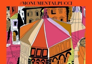 Un’altra importante novità di quest’anno per Firenze è stato il Monumental Pucci. Il progetto è stato realizzato in collaborazione tra la famosa maison fiorentina Emilio Pucci e Pitti immagine per dare un’immagine gradevole alle impalcature del restauro del Battistero di San Giovanni. Su un lato è stata posta l’immagine del famoso foulard che venne disegnato dal Marchese Emilio Pucci nel 1957 rappresentante uno scorcio dall’alto di Piazza San Giovanni, mentre, sugli altri lati, un disegno stilizzato dei caratteri del battistero nei colori del rosa, giallo, arancio e magenta.