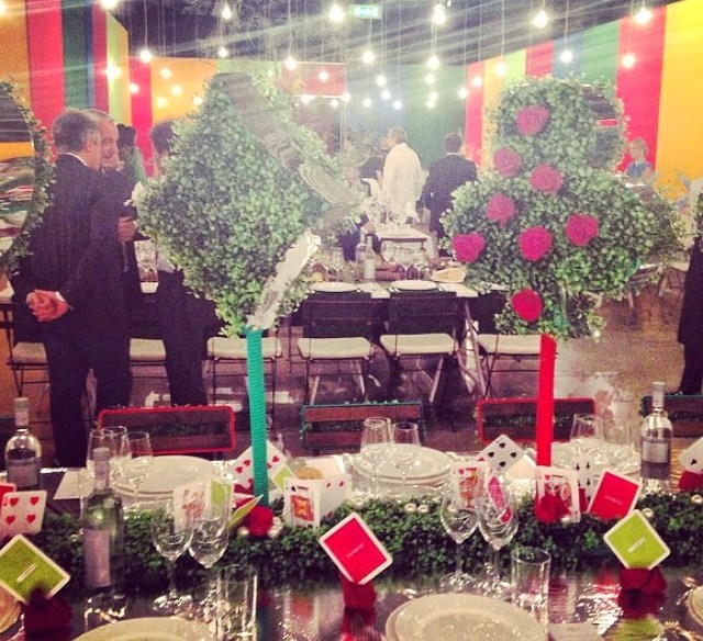 Durante la serata del 12 giugno si è tenuta invece la vera e propria cena conviviale: il grigiore del padiglione 1 della Fiera Milano City è stato improvvisamente spento dal colore, dalla scenografia e dalla giocosità delle mise en place dei vari stilisti. Appena varcata la soglia del gate 6 sembrava di essere catapultati in un mondo surreale, fiabesco: il tema fantasy dominava in ogni tavolo e ogni stilista aveva saputo interpretarlo nel migliore dei modi.