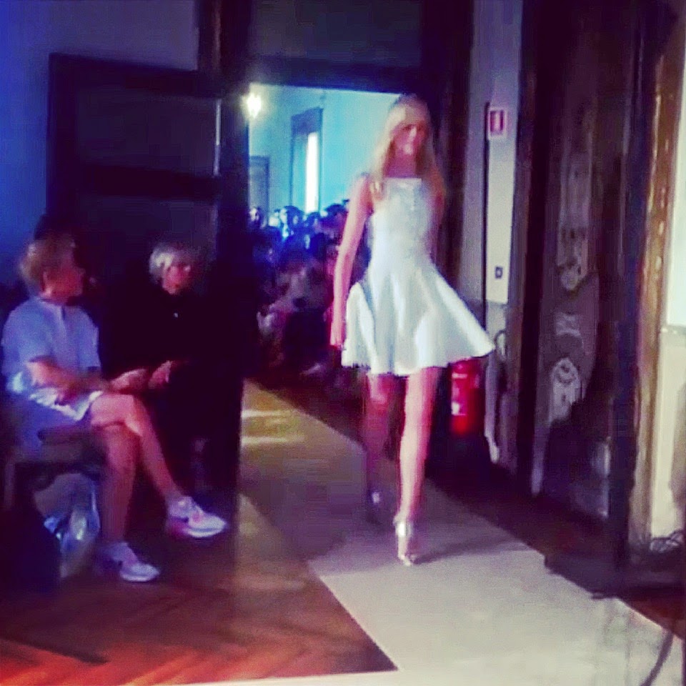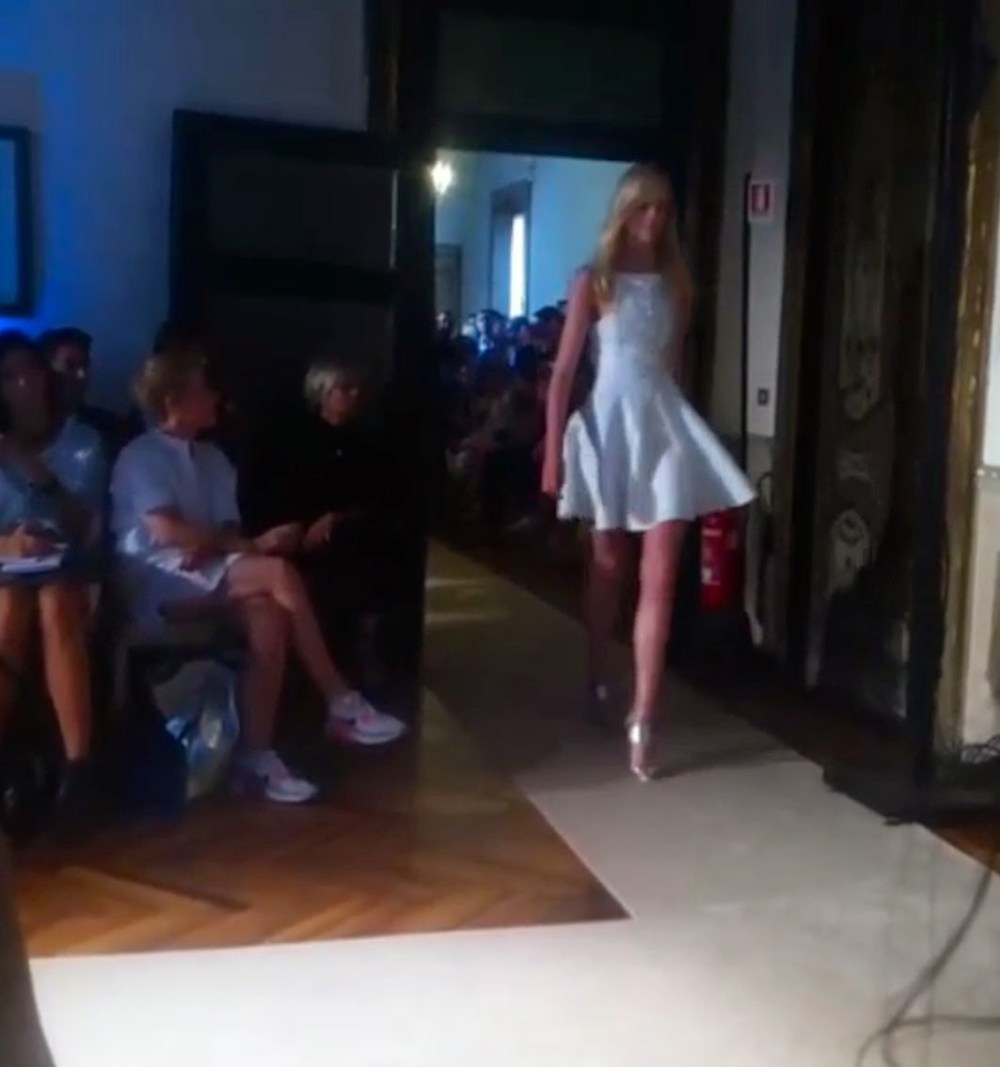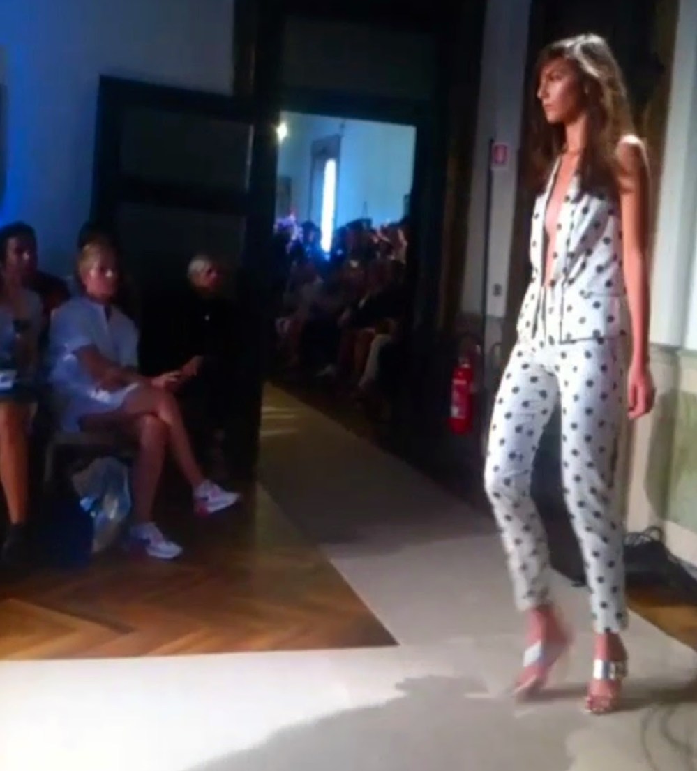 Nella splendida location di Palazzo Clerici ha sfilato anche Genny. La collezione possiede l’impronta di eleganza e charm che da sempre contraddistingue il brand: tute e tailleur in polka dots aprono la sfilata per poi evolversi in abiti da cocktail dalle ampie gonne a ruota e abiti da sera. I tessuti sono preziosi, dalla seta allo shantung, arricchiti spesso di decorazioni a cristalli. I colori sono quelli dell’aristocrazia: dal bianco all’oro che perfettamente rispecchiano la location nella quale sono inseriti.