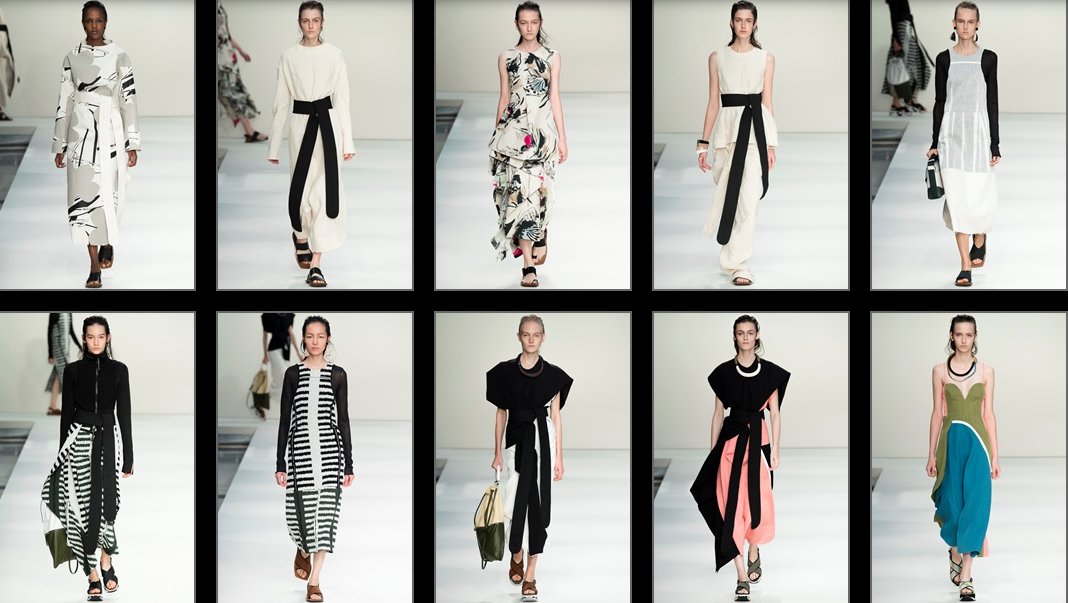 Il tutto è avvolto da una sfera di pace, quasi Zen ed orientale. Ed è proprio questo tocco orientale che caratterizza l’intera sfilata: leitmotiv della collezione diventa il kimono, rivisitato con stampe floreali, colori e motivi geometrici, sempre però ripresi dalla cultura cinese. Il classico sandalo con le calze bianche abbinate è il calzare unico dell’intera collezione, la cintura del karatè cinge in maniera femminile abiti e camicie. Il tutto però senza mai trascurare la sua valenza originale.