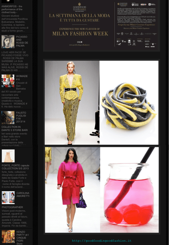 Milan Fashion Week non vuol dire solo moda, sfilate, eventi glam e street style a livelli estremi: MFW vuol dire anche business, buyer ma soprattutto Made in Italy. Massima espressione di questo non può che essere il food, sia nella sua accezione primaria di prodotto alimentare, sia di cucina e di chef stellati. È per questo motivo che nelle ultime tre stagioni parallelamente alla settimana della moda si è svolta la manifestazione del Good Food in Good Fashion. L’evento, nato dalla collaborazione tra l’Associazione Maestro Martino, con a capo lo chef Carlo Cracco, e Milano Gourmet Experience, ha come scopo creare un perfetto connubio e parallelismo tra gli abiti che vengono presentati sulle passerelle e i piatti creati da chef stellati. Location sono 9 hotel a cinque stelle (Boscolo, Bulgari Hotel, Chateau Monfort, Four Seasons, Grand Hotel, hotel Magna Pars Suites, Principe di Savoia, Palazzo Parigi, The Westin Palace) dove per una settimana si volgono party, aperitivi e brunch cucinati dai migliori chef della città che vogliono presentare le loro collezioni, le loro opere, al pari dei grandi stilisti e dai quali riprendono le geometrie e gli accostamenti di colore. Vere e proprie esperienze sensoriali che, al contrario degli abiti in passerella, non si limitano solo alla vista, al “guardare ma non toccare”, ma che vengono testati direttamente dai buyer, critici e commensali, attraverso l’utilizzo del gusto e del “palato”.
