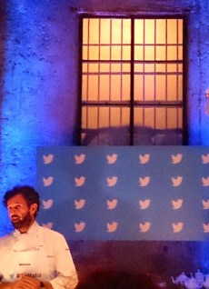 La serata è stata interamente dedicata all’uccellino blu che ha invaso ogni angolo della scena: dalle gabbiette in metallo, ai maxi schermo disseminati nelle lunghe pareti, sino ai segnaposti e flyer volati ovunque. Le luci blu hanno illuminato gli spettatori davanti allo spettacolo del padrone di casa Carlo Cracco, che in pochi minuti ha cucinato i piatti presenti nel menù e serviti successivamente ai commensali. L’evento è proseguito con dj set e calici di champagne, raccontata ovviamente in diretta dalle migliaia di twitt e hashtag creati dai presenti e condivisi in tutto il mondo.