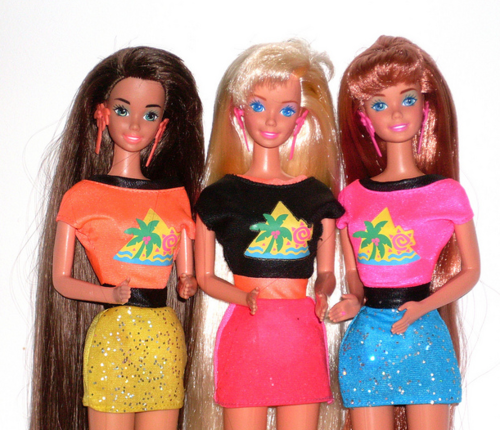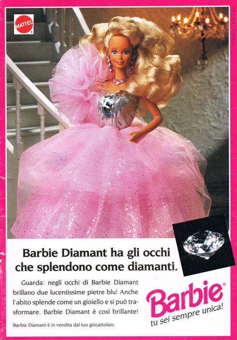 della moda: Barbie.Nata nel 1959 in onore della figlia di Ruth, che adorava giocare con i ritagli delle modelle dei giornali di moda piuttosto che con le bambole a sembianza di neonati, riscontrò parecchie polemiche alla sua immissione sul mercato a causa dei suoi tratti eccessivamente adulti e provocanti. Ben presto però i fatti sconfissero le polemiche e con più di 350000 esemplari venduti in un solo anno, divenne uno dei giocattoli prediletti delle bambine. Al primo costume a righe bianco e nero indossato dalla numero 1, si aggiunsero ben presto ogni tipo di accessorio, mobilio, mezzo di trasporto e soprattutto guardaroba ispirati alle star del cinema americano.