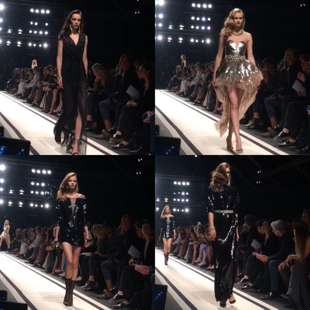 L’erotismo patinato della donna rappresentata da Helmut Newton prende materia in questa collezione primavera – estate 2017 di Elisabetta Franchi. Longilinea, sofisticata e altezzosa, nel suo chignon impreziosito da importanti chandelier, la donna della stilista bolognese incalza la passerella vestita in capi dalle profonde scollature e lunghe gonne attillate.